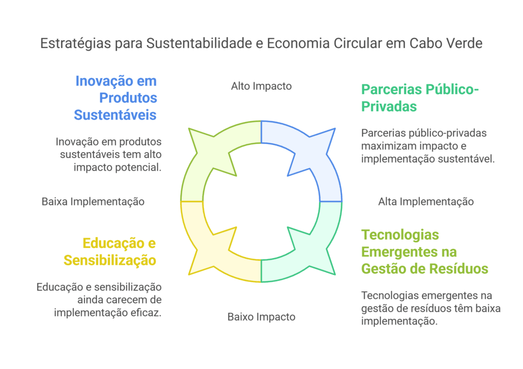 A pesquisa sobre gestão ambiental e estratégias para empresas sustentáveis em Cabo Verde destaca a importância da economia circular, da integração de princípios ESG e do desenvolvimento de energias renováveis como pilares fundamentais para o crescimento sustentável do arquipélago. A implementação de práticas de economia circular, como a reutilização de materiais e a reciclagem de resíduos, pode reduzir significativamente os custos de produção e aumentar a eficiência operacional das empresas, enquanto o fortalecimento das cadeias de valor locais e as parcerias público-privadas são essenciais para promover a resiliência económica e a inovação (Ellen MacArthur Foundation, FAO).