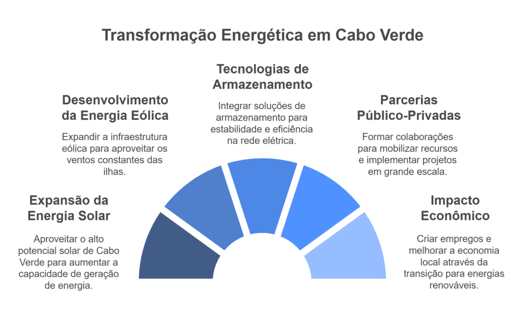 Para maximizar o uso das energias renováveis, é essencial investir em tecnologias de armazenamento de energia, como baterias de lítio e sistemas de armazenamento por bombeamento. O projeto Santiago Pumped Storage é um exemplo de como Cabo Verde está a integrar soluções de armazenamento para garantir a estabilidade da rede elétrica e a continuidade do fornecimento de energia, mesmo quando as condições climáticas não são favoráveis para a geração de energia solar ou eólica (Expresso das Ilhas).